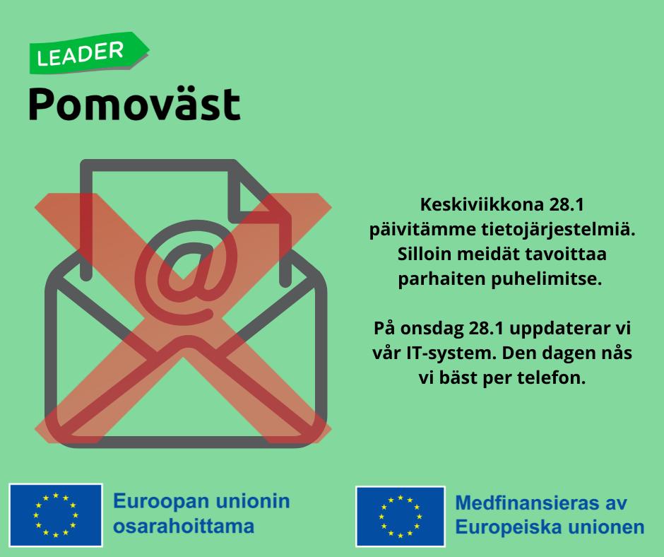 Obs! Onsdag 28.1 är det bättre att ringa än eposta till oss. Pga datauppdatering har vi ingen epost i användning den dagen.