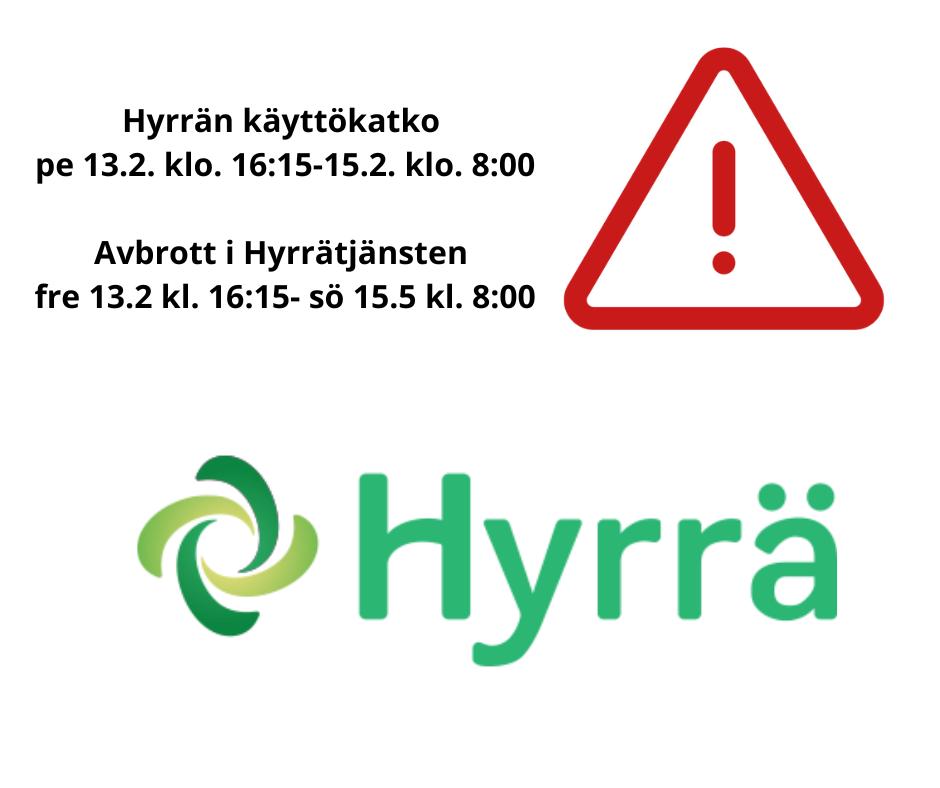 Hyrräjärjestelmä on poissa käytössä perjantaina 13.2. klo. 16:15- sunnuntai 15.2 klo. 8:00.